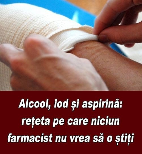 Se combina alcool si iod si se amesteca si pastilele de aspirina zdrobite. Depozitati restul remediului intr-un loc intunecat si rece timp de 21 de zile. Faceti o compresa sau folositi acest amestec si masati direct zona in care simtiti durere.